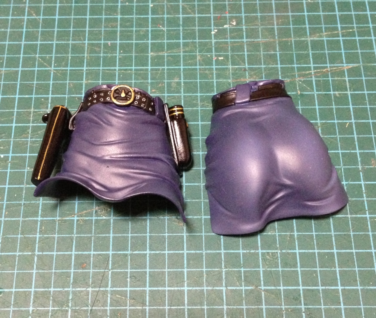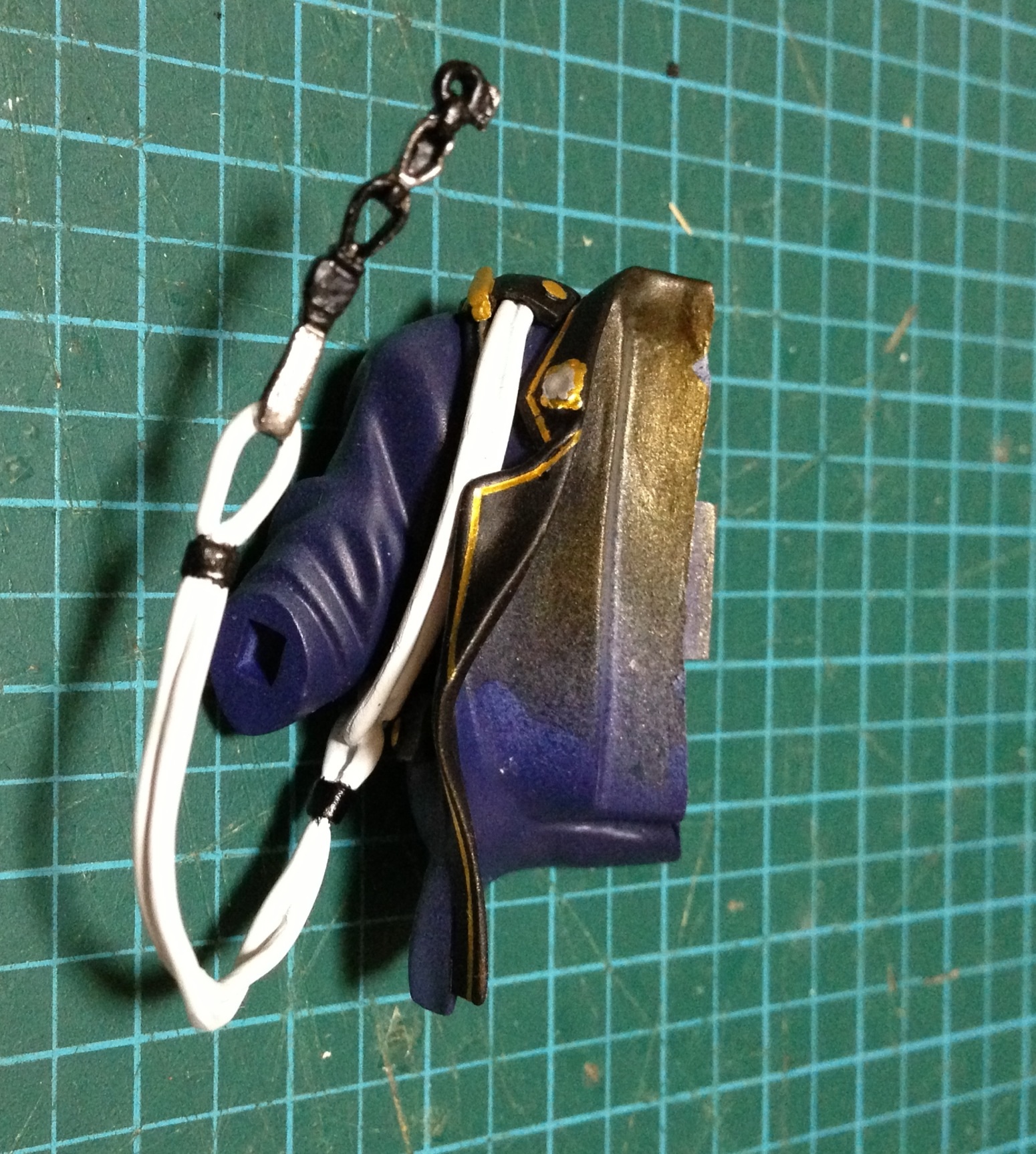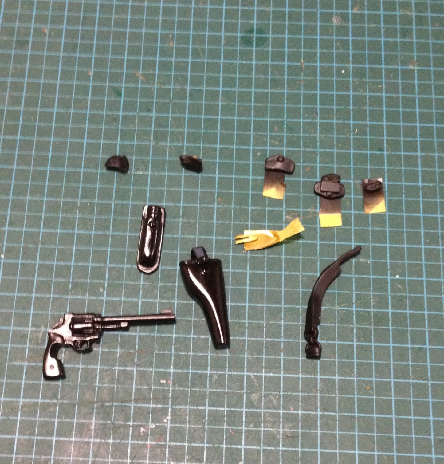 ゴールド部分をマスキング後、ホルスターと警棒はグロスで、それ以外はフラットで塗装です。