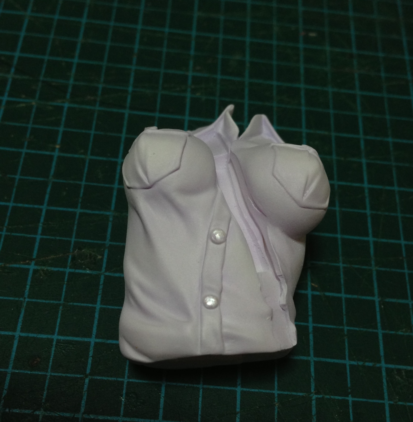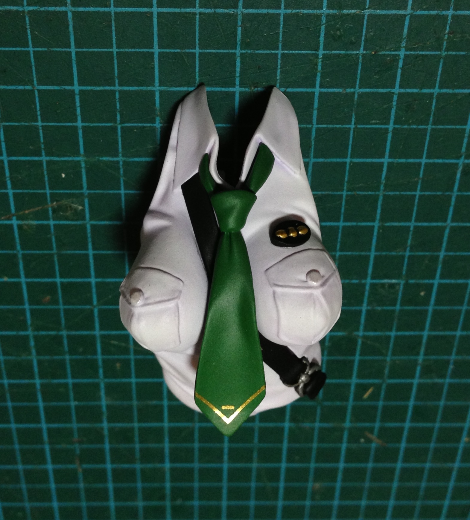制服の大部分を塗装後、襟の部分を塗装する為のマスキングです。